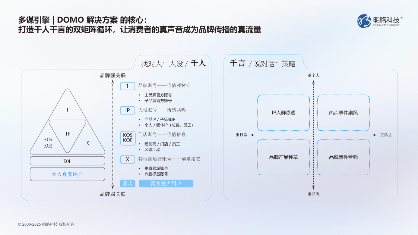 在这一探索中,明略科技秒针系统DOMO多谋引擎以“AI+洞察”模式,为品牌提供了另一种可能——构建动态的“社会声量感知与响应网络”,助力品牌更高效地实现“找对人”与“说对话”的规模化运营。