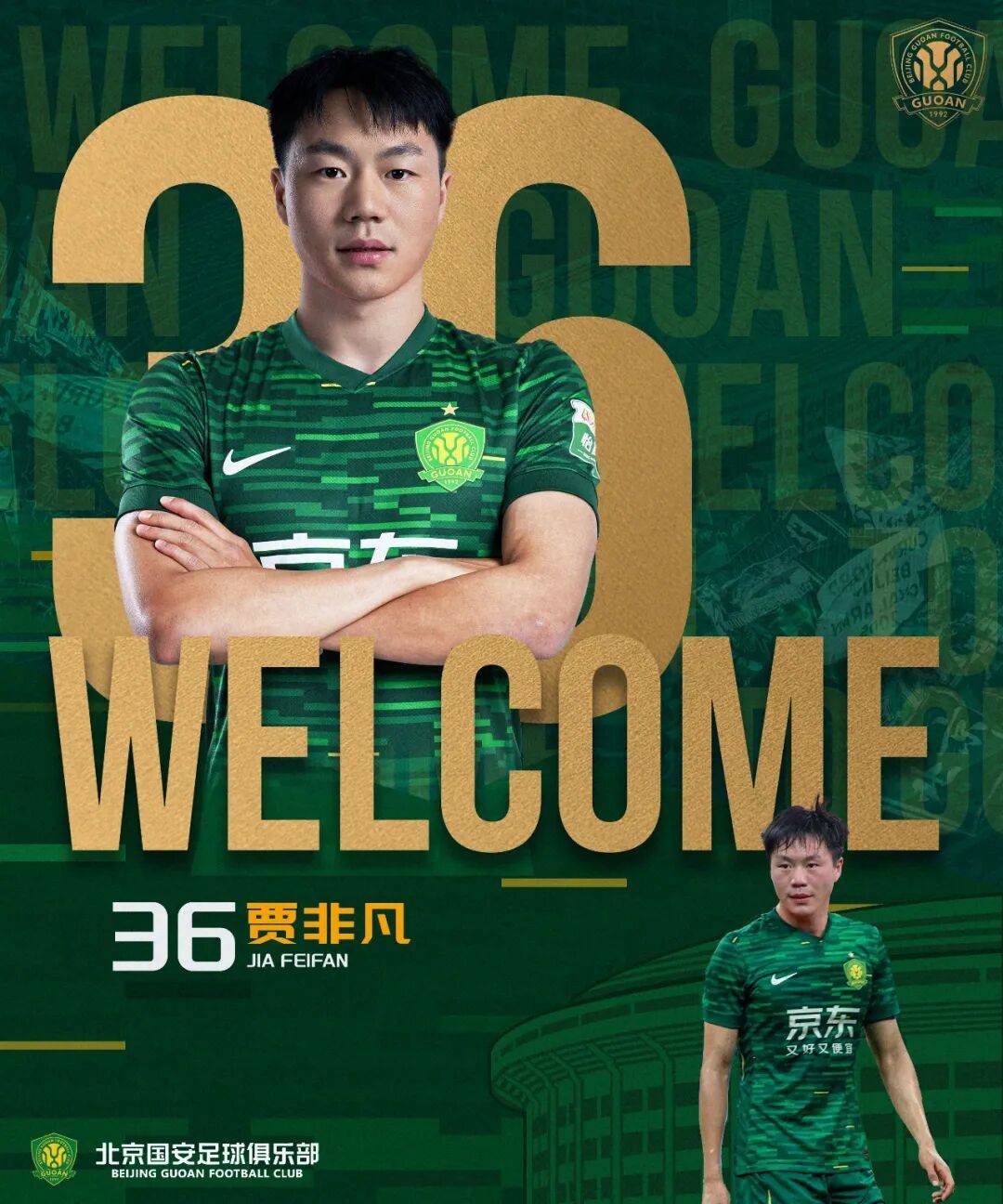 贾非凡正式加盟北京国安足球俱乐部,他将身披36号球衣,代表北京国安出战本赛季中超联赛、亚冠联赛、足协杯等各项赛事。